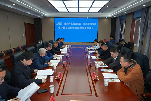 本网讯:(记者 张丽超)山西省山阴县“生态产品价值实现”试点项目接洽暨中韩合作盐碱地治理洽谈会,于10月22下午在山阴经济技术开发区举行。