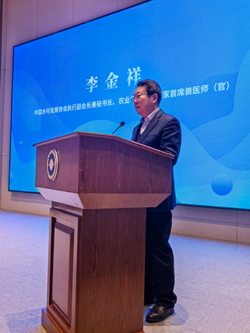 中国乡村发展协会执行副会长兼秘书长、农业农村部原国家首席兽医师李金祥在致辞中指出,党的二十大和二十届四中全会为新时代农业农村发展指明了方向、做出了战略部署。他指出,要坚持把解决好“三农”问题作为全党工作的重中之重,坚定不移地加快农业农村现代化,扎实推进乡村全面振兴不断取得新成效。