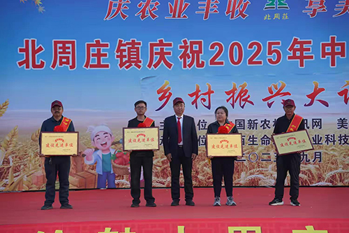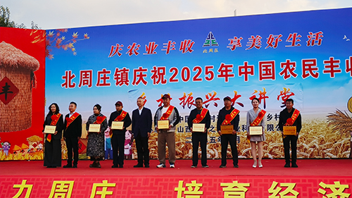 活动现场还举行隆重的表彰仪式,为全镇在三农工作与乡村发展中贡献卓著的集体和先进个人颁奖,将喜庆氛围推向高潮。刘宇、王喜、张志荣、华丽、王永贵、李天明、郭文杰、李世军、张国栋等9位被授予“乡村振兴先进人物”称号。获奖者中,有扎根农业一线、用技术守护良田的种植能手,有勇挑改革重担、推动农业持续发展的镇村干部,还有助力产业升级、拓宽农民增收渠道的带头人。每一位获奖者,都是北周庄镇三农发展的亲历者与推动者,更是新时代基层奋斗者的优秀典范。