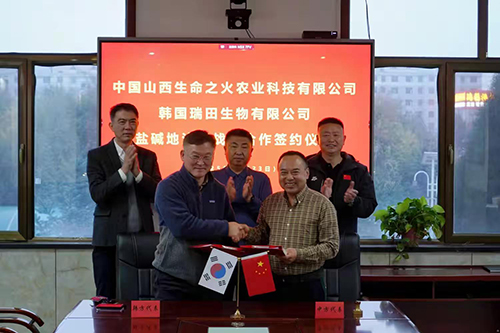 本网讯:(张丽超、赵玉玺)10月23日,随着山西省山阴县“生态产品价值实现”试点项目接洽暨中韩合作盐碱地治理洽谈会的顺利落幕,作为试点承载地的北周庄镇再传捷报——镇内重点培育的本土企业中国山西生命之火农业科技有限公司,与韩国瑞田生物有限公司正式签订盐碱地治理战略合作意向书。此次跨国合作不仅是山西生命之火农业科技有限公司发展的关键跨越,更是该县首例盐碱地治理领域跨国合作项目,标志着北周庄镇在农业生态修复与高层次技术对接中迈出里程碑式步伐,为区域盐碱地资源转化、农业可持续发展及工业固废高效利用注入强劲动力。