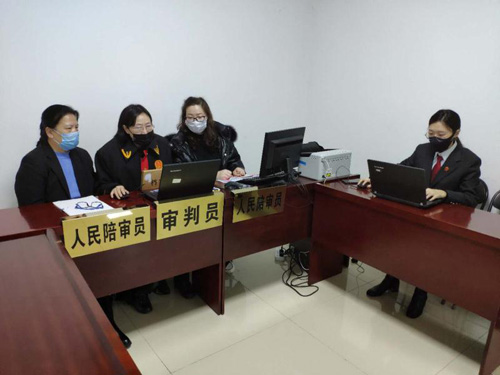 2月26日一大早,合议庭成员和书记员就戴着口罩来到法院进行庭前准备工作。开庭时间一到,法官王海香开启了互联网庭审系统,原告通过手机登陆系统,参与到庭审中。庭审中,依托在线视频,法官、陪审员与当事人进行了实时对话,核实当事人身份信息、审查当事人提交的证据材料、开展法庭调查工作……庭审全程同步录音录像,整个庭审过程仅30分钟便完成。庭审结束后,当事人通过在线平台端口可即时查看庭审笔录,进行电子签名确认。